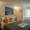 Two Bedrooms: One with sea views and overlooking the square, equipped with air conditioning, and a quieter one without a view or window, equipped with a Dyson fan.